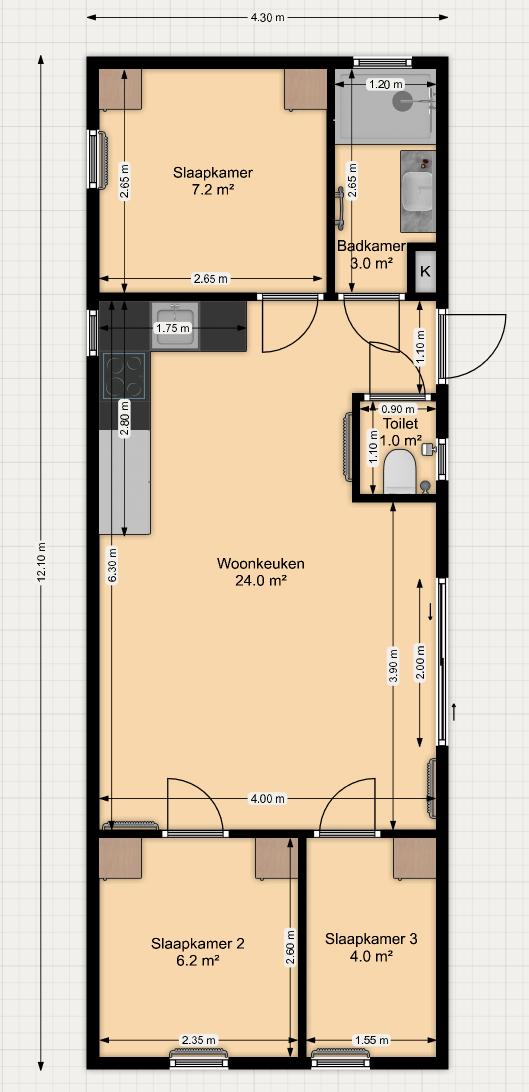 Ontspan in de luxe badkamer, compleet met een inloopdouche en een badmeubel met een verwarmde en verlichte spiegel voor extra comfort en gemak. De Fibo trespo wanden in de toilet en badkamer zorgen voor duurzaamheid en eenvoudig onderhoud, terwijl het aparte toilet extra privacy en gemak biedt voor u en uw gasten.
