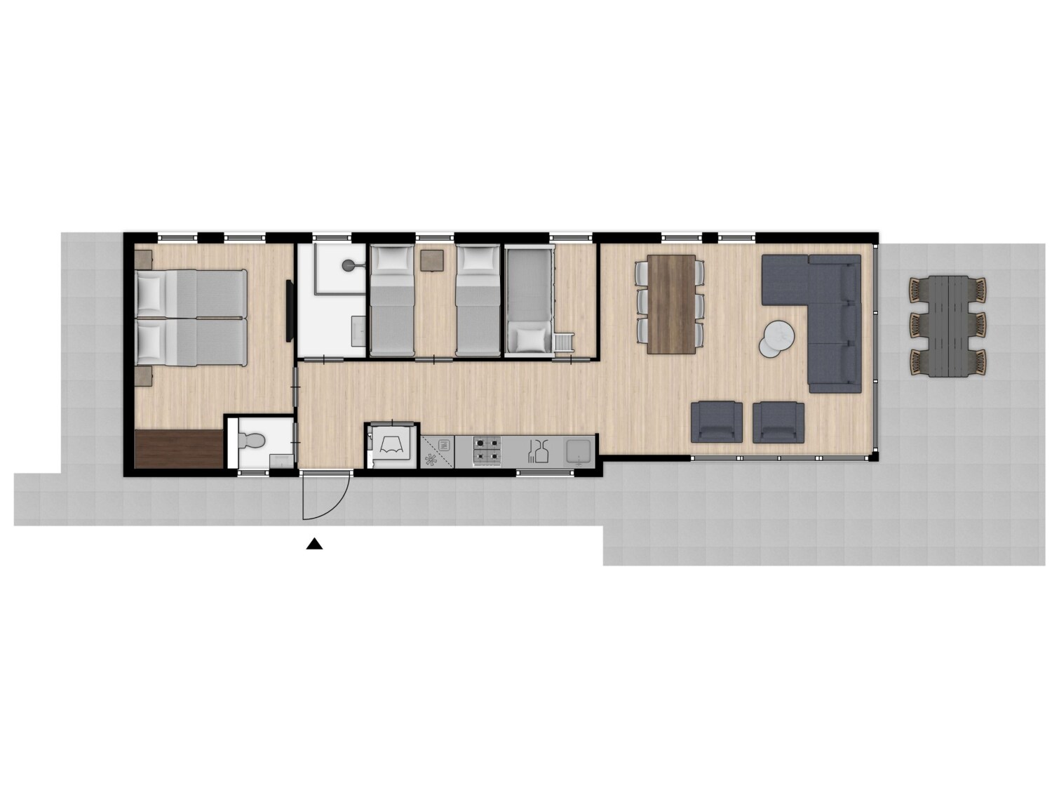 Recreatiechalet Krachtighuizen 6-persoons biedt een comfortabele ruimte waar u zich direct thuis zult voelen. Met dezelfde hoogwaardige kenmerken als chalet type 1, maar met een extra slaapkamer, biedt dit prachtige chalet nog meer mogelijkheden als vakantieverblijf.